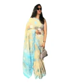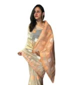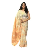 Beige Blue / Off White Orange Coloured Semi Cotton Saree Adorned with Buti Weaving, Paired with an Unstitched Contrast Blouse Piece. This Cotton Saree Ensemble Embodies Timeless Elegance and Showcases Intricate Craftsmanship by Smitas Fashion Studio, Making It Perfect for Weddings and Other Grand Occasions. A Sophisticated Choice for Those Who Seek Exclusivity.
