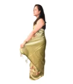 Light Yellow / Mint Green / Peachy-orange / Rose Pink Coloured Floral Printed Banarasi Weaving Semi Silk Saree, Paired with an Unstitched Small Rose Print Blouse Piece. This Saree Ensemble Embodies Timeless Elegance and Showcases Intricate Craftsmanship by Smitas Fashion Studio, Making It Perfect for Weddings and Other Grand Occasions. A Sophisticated Choice for Those Who Seek Exclusivity.