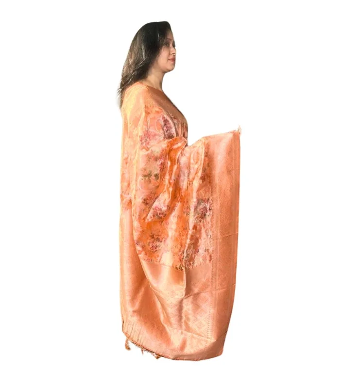 Dress Description: Floral Printed Banarasi Weaving Semi Silk Saree + Blouse Piece